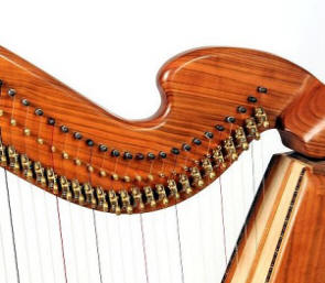 celtica - Corpo in ciliegio, tavola in betulla laminata, 33 corde, Estensione: DO1 - SOL5 Misure cm. 139 x 70, peso 9 kg. Equipaggiata con leve "Delacour" finitura ottone, set completo Celtic harp - Cherry body, aircrafted birch soundboard, 33 nylon strings from C1-G5 Measures: cm. 139 x 70, weight: kg. 9 Full set of "Delacour" lbrass evers